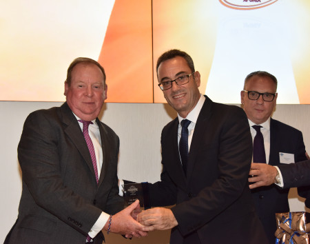 Συγκινητική στιγμή της βραδιάς ήταν η απονομή τιμητικής πλακέτας στον Βετεράνο Ασφαλιστή κ. Γιώργου Βασιλείου ο οποίος υπηρέτησε 61έτη την Ασφαλιστική Βιομηχανία της Κύπρου.